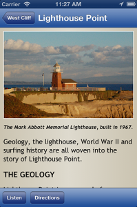Mobile Ranger now has a new business model built on crowd sourcing content generation to “content makers,” who already have the expertise and commitment to the dissemination of information about their local area. Our second app, will be free and it will test our new approach. It is being made in collaboration with UC Santa Cruz, the City of Santa Cruz, and local non-profits. To date, it has validated the idea that quality content can be provided by unpaid “content makers.” People in fact got very excited about making a mobile app about a subject that speaks to their passion. We had eight people volunteer from 5-50 hours each in research, writing, editing, or photographic contributions. They even networked and got their friends involved.
