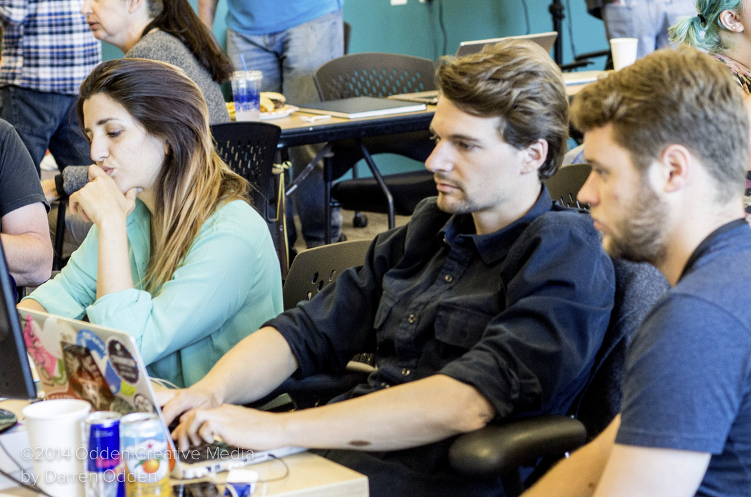 Saturday was just as charged with energy as Friday, but the feeling was more focused. Participants hunched over laptops, typing furiously, only coming up for food or help with their project.