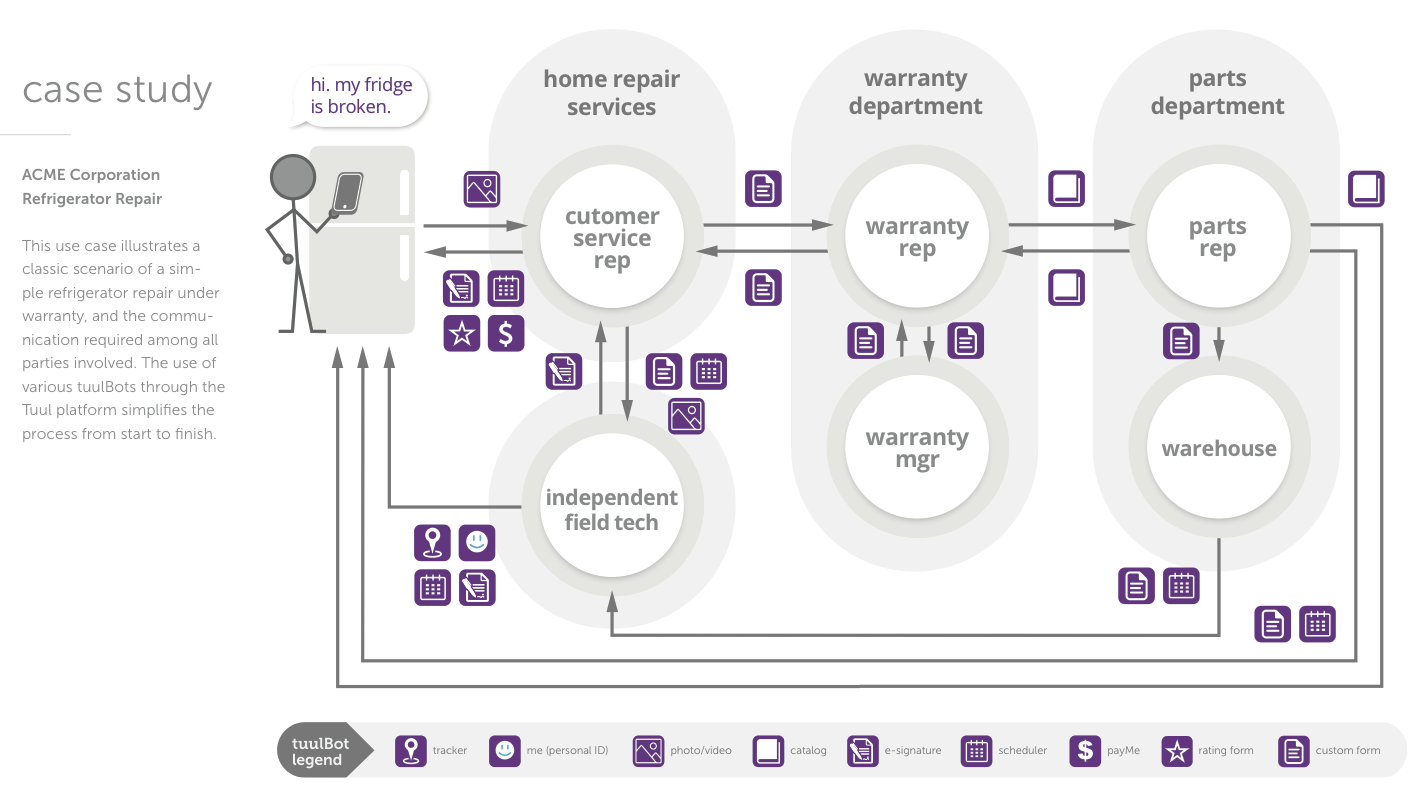 Tuul’s Alliance SaaS solution can run sidecar to existing ERP and CRM systems and interact with them on an as-necessary basis. The CSR (Customer Support Representative) has the ability to focus the collective efforts of the organizations and affiliates to solve the customer’s issue using one interaction platform. Tuul Alliance will not only provide the communication conduit between the CSR and consumer, but will also coordinate all of the internal activities necessary to solve the problem. Through the use of our analytics tools, the company will have real-time access to performance metrics and be able to create longer-term efficiencies within their organizations. Depending on the company’s ultimate requirements, Tuul Alliance also has the ability to serve as the unified system-of-record for the lifecycle of the customer’s interaction.