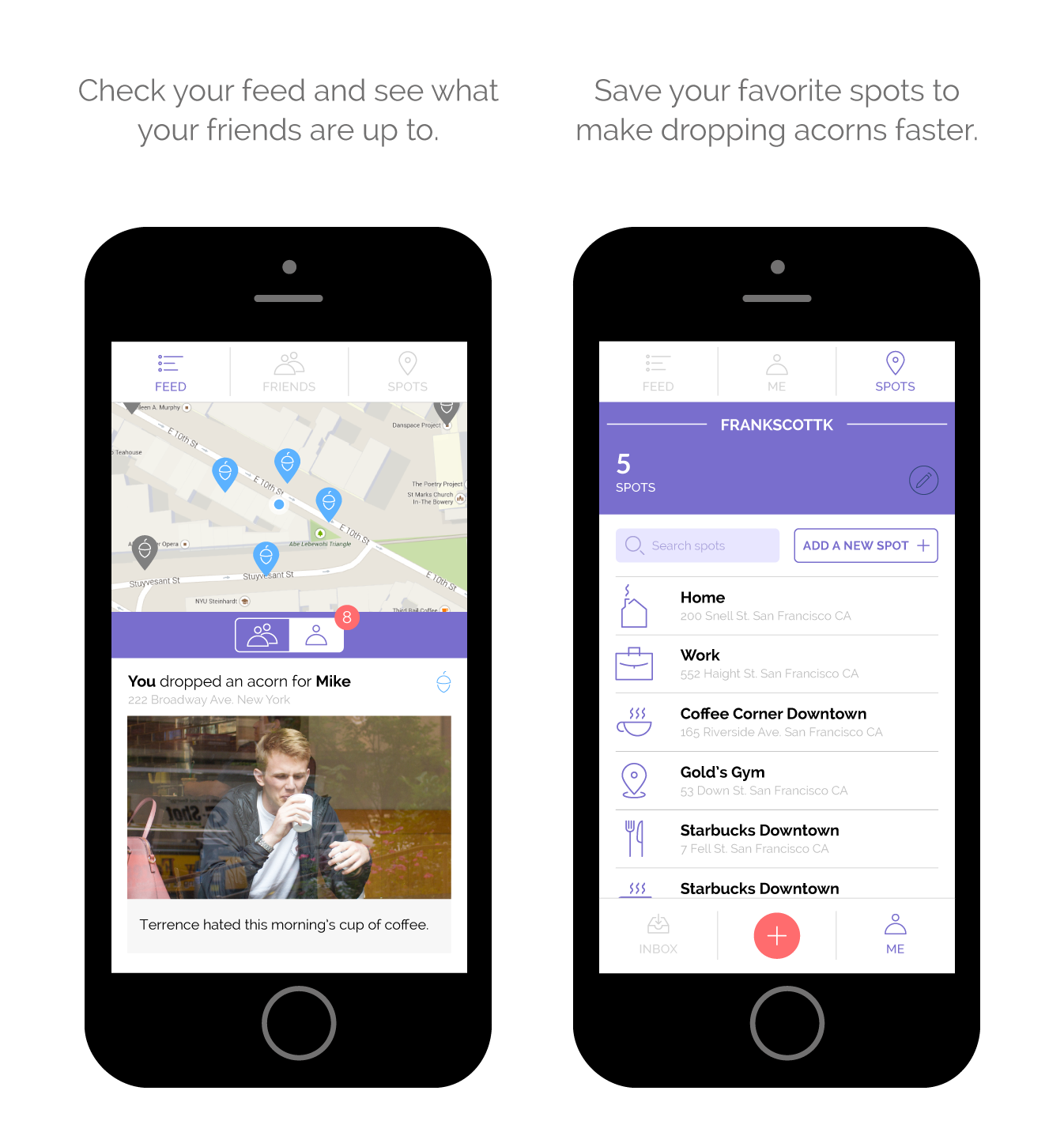You are probably asking yourself, 250 words into this story, what does this app actually do? Acorn (drumroll, dramatic pause) is a mobile platform that allows you to set location-triggered reminders and messages anywhere in the world. When you or a friend enter the radius of an “acorn,” the message pops up. When you leave the radius, the acorn message can no longer be viewed. The concept is simple; the implementation is wide-ranging.