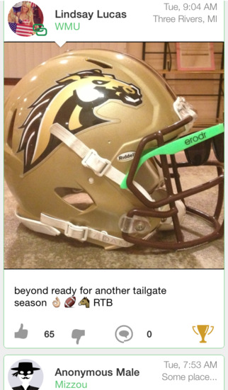 Erodr’s features put it at the center of major trends in today’s App market, including ephemeral content (all posts expire and disappear forever), anonymous posts, and private photo messaging. Erodr is also mobile only (not searchable), and peer moderated (students vote thumbs up or down, determining the life of a post). The Anonymous Ticker is by far the most popular new feature. It allows any user to see a continuous stream of anonymous posts from every college in the country. Even new users who have not yet validated their student status can see anonymous posts, so people trying out the app before validating can see Erodr’s most intriguing content.