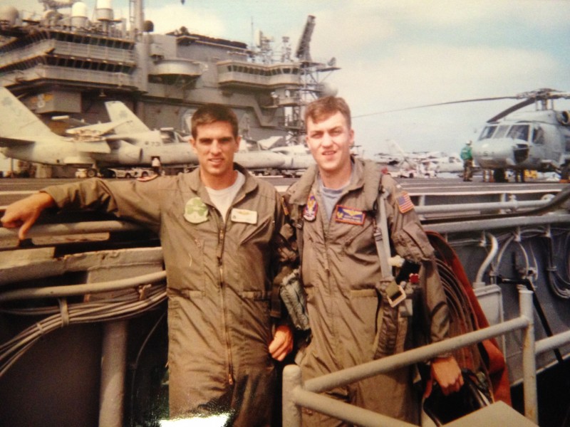 [photo above: Jeremy Neuner (right) prepares for flight operations aboard the aircraft carrier USS Constellation (CV-64) in 1999.]