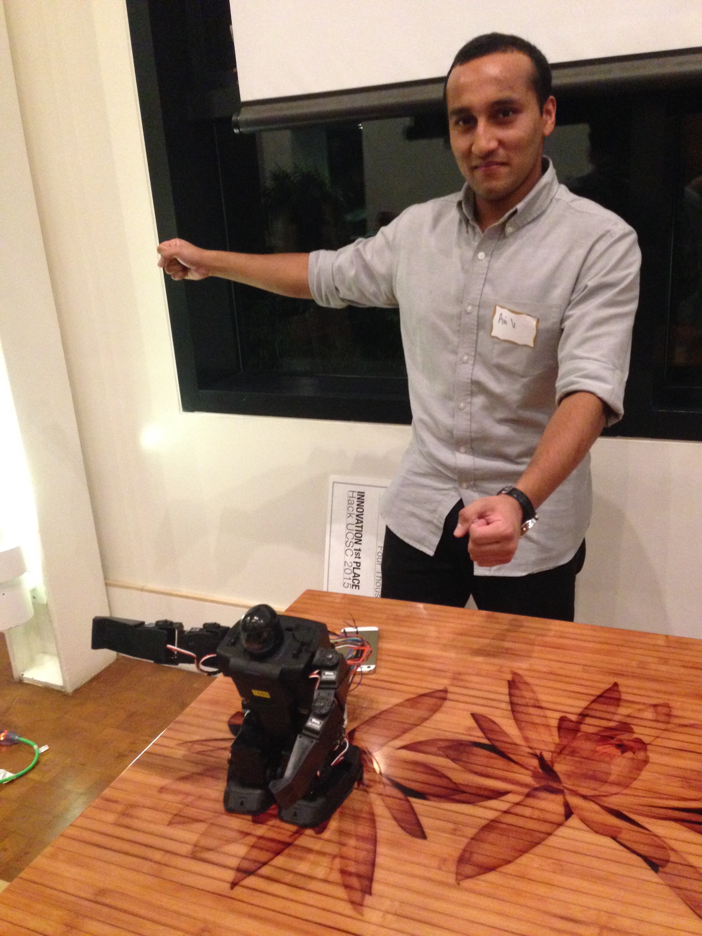 Avi Varshney’s tech made a humanoid robot move in sync with its user. For example, if a user raises their left arm, the robot also raises its left arm. This sci-fi technology uses X-box Kinect, so the user does not have to wear any sensors. They simply have to move where the motion sensors can see them.