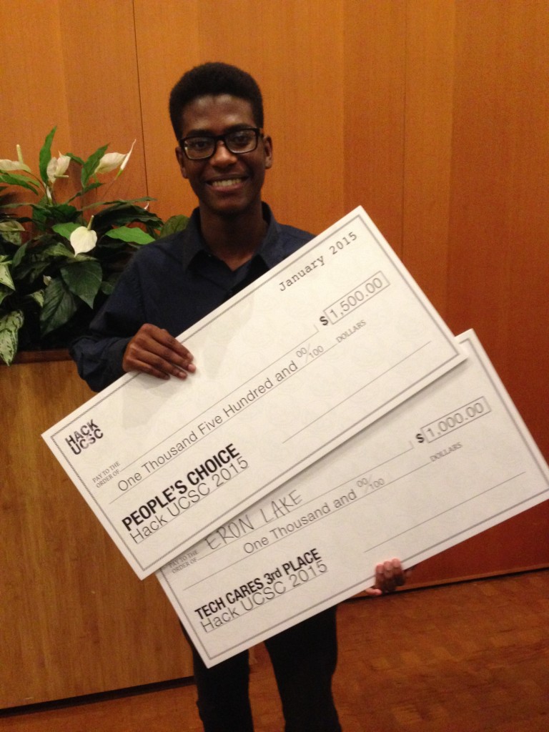 ![Eron Lake is a double prize winner, receiving $2,500 total for 3rd Place in Tech Cares Category, and The People’s Choice Award.]](https://www.santacruztechbeat.com/wp-content/uploads/2015/01/Eron-Lake-and-Checks-e1421098251502-768x1024.jpg)