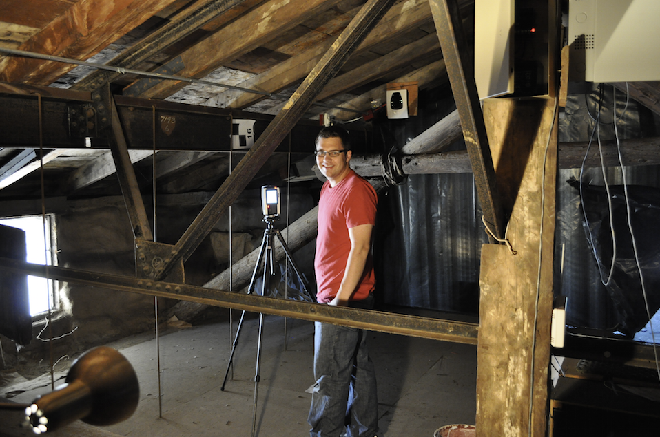 Employee from CyArk, an Oakland-based nonprofit dedicated to creating digital archives of significant cultural and historical sites around the world, scans the interior of an historic building. Photo credit: Scott Lee/CyArk