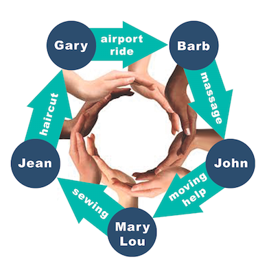 What’s different about TimeBanking as an economic institution is that nobody makes a profit. No money changes hands for services provided. It’s not a marketing platform or a commodities broker. It’s not barter because it doesn’t incorporate commercial exchange or price.