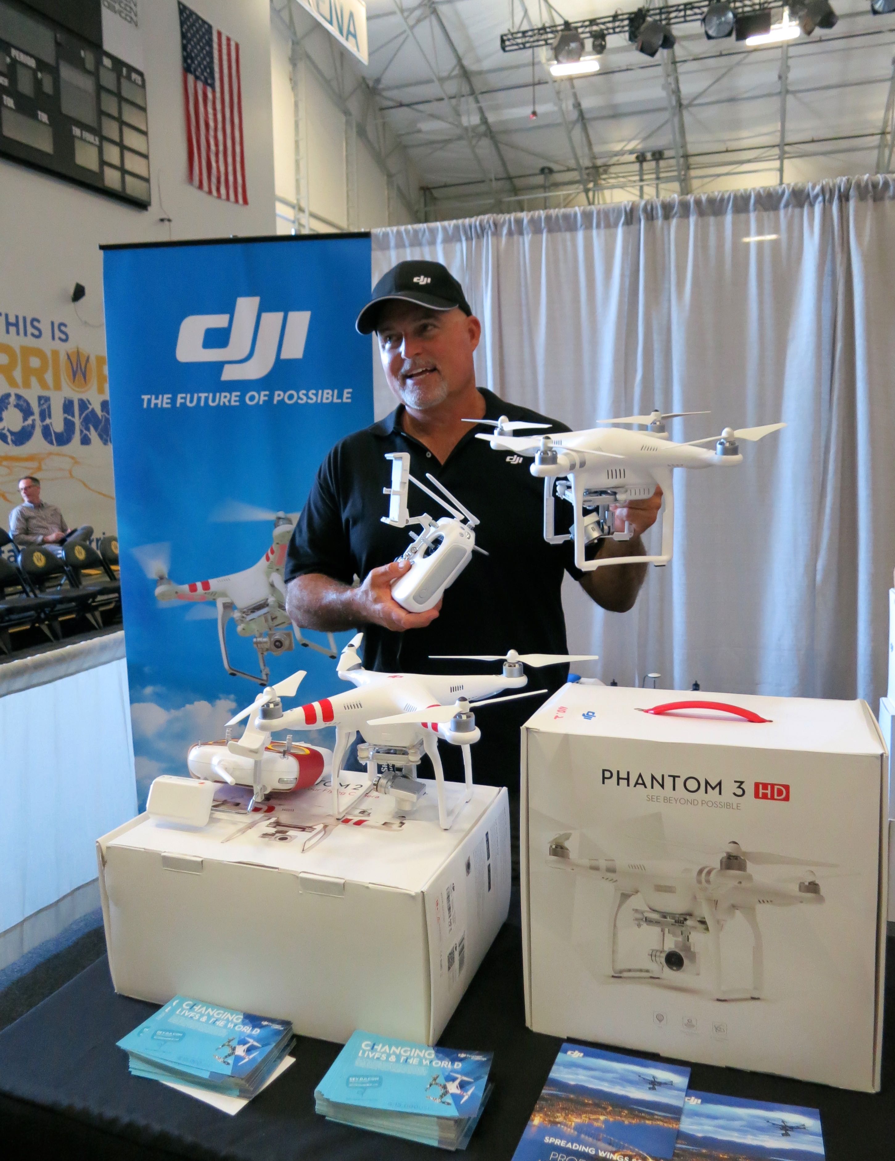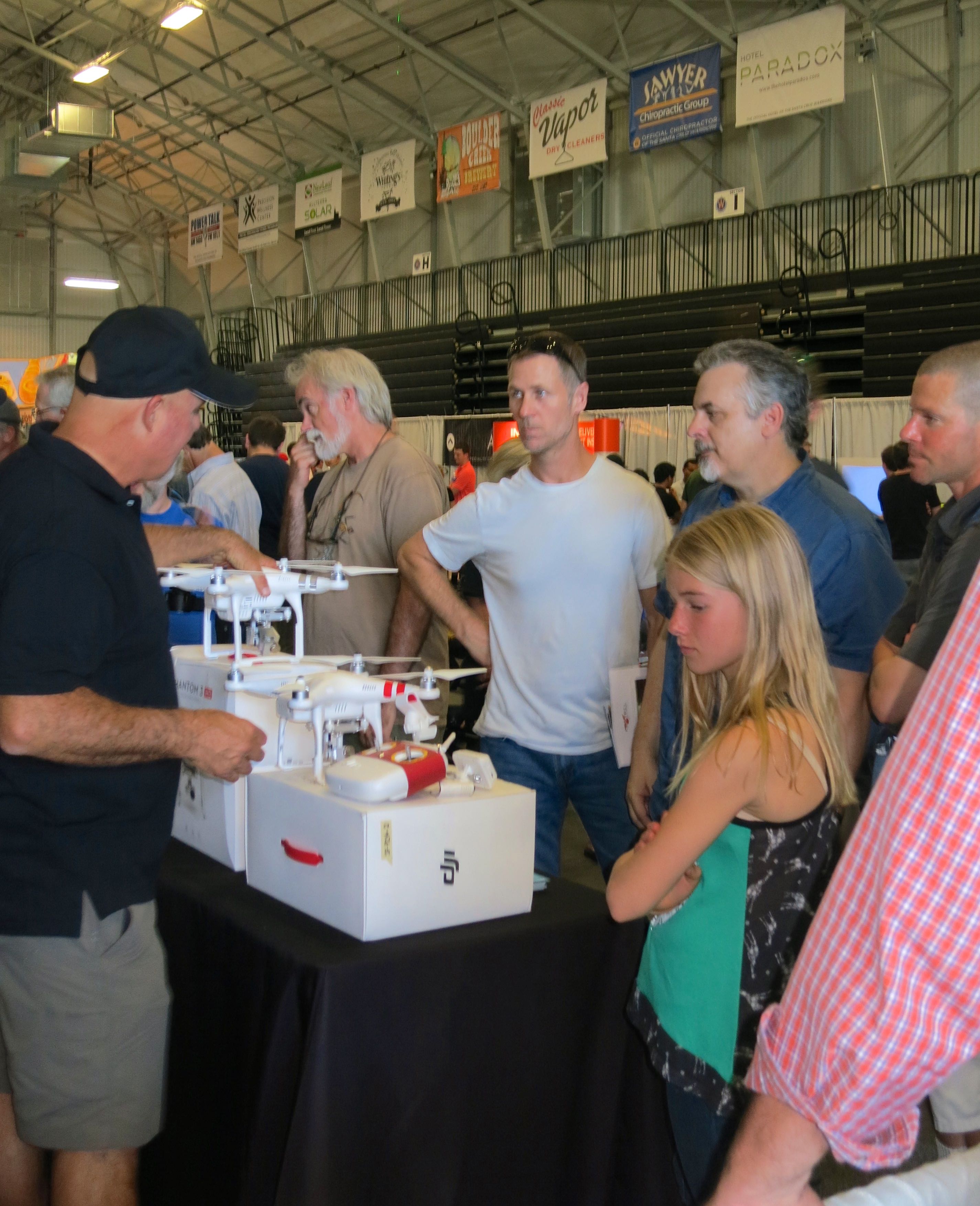 The Thursday evening expo at Santa Cruz’s Kaiser Permanente Arena drew some kids as well as adults to check out drone models and meet industry experts. (Photo credit: Karen Kefauver)