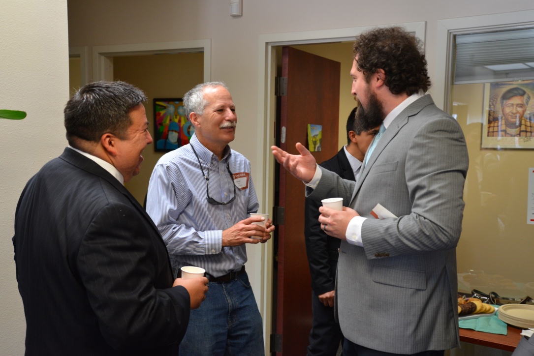 SACNAS President Dr. Gabriel Montaño (left), Santa Cruz Mayor Don Lane, and SACNAS Director of Programs Corey Azevedo connect at the recent SACNAS Open House. (Contributed)