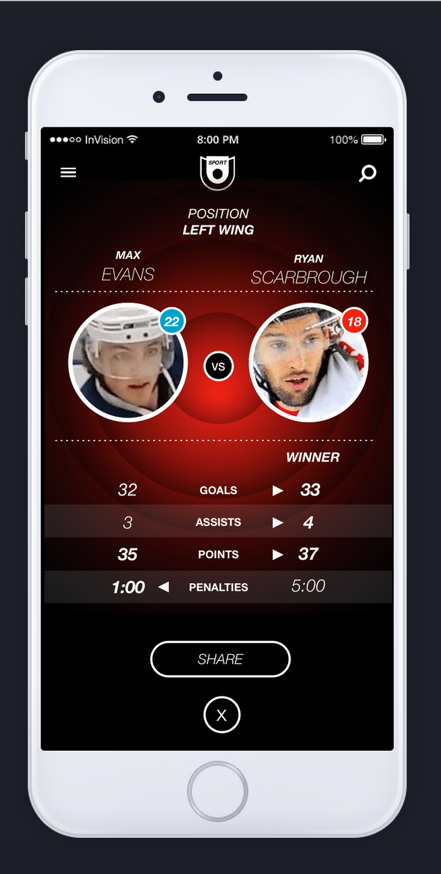 Athlete’s are competitive. Any user can select 2 athlete’s to compare side by side, showing stat totals for the current season, and career.