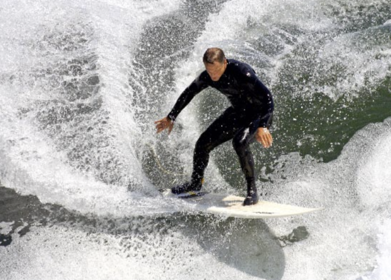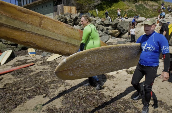 I think about this on a Friday in August at 11 a.m. when I can’t find the person I was planning to meet. He was supposed to be waiting for me in his office, but took off suddenly to surf, as he later confessed. I had already been warned by a self-taught surf meteorologist, Mark Sponsler, who specializes in predicting big waves, who said, “This is not like golf, where you can schedule to be out at 6 a.m. In this game, there may be no course at 6 a.m.”
