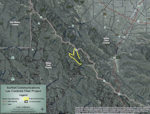 The project would reach something like 180 homes, at a total cost of $1.2 million, with the balance paid by the Las Cumbres homeowners association and Surfnet. That comes to $6,700 per household overall, with the CASF grant covering $4,000 of it. Service to individual homes will be via direct fiber connections, but the system will be fed by a wireless link, which would have less overall capacity.
