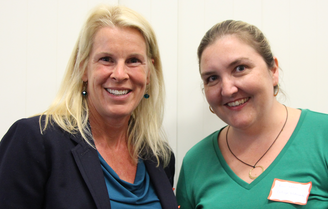 After Calliope Waterworks' presentation at Sand Hill Angels RAW pitch night, Hilary Bryant, CMO and Keri Waters, CEO share a smile. Credit: Jan Janes.