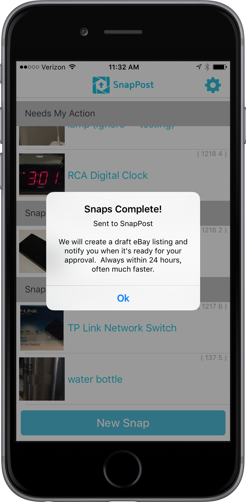 The posting process starts when the seller takes photographs and sends them to SnapPost via the app. Unlike many smartphone apps that are entirely automated, SnapPost uses real (human!) experts to identify, price, and write the keywords and text for your item. When your photographs are received, they are processed by a SnapPost expert who: