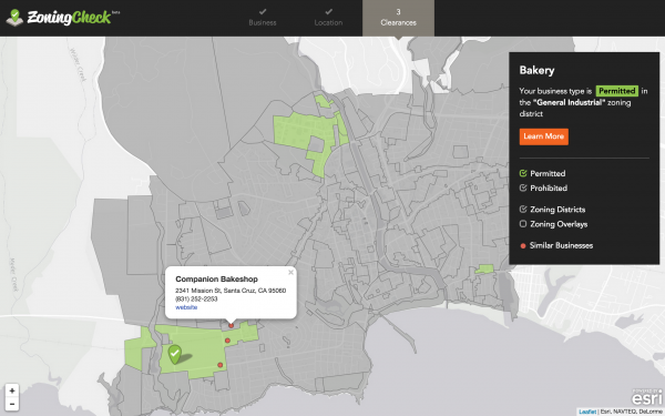 OpenCounter hails from Santa Cruz. Originally launched by the City of Santa Cruz, OpenCounter was named as one of 5 Civic Startups to Watch in 2015. OpenCounter helps entrepreneurs to get their businesses up and running more quickly and easily by providing an online interface to the permitting process at City Hall. By asking the right questions, in the right order, business owners see the requirements, fees, and processing time that will apply to their planned use and location.