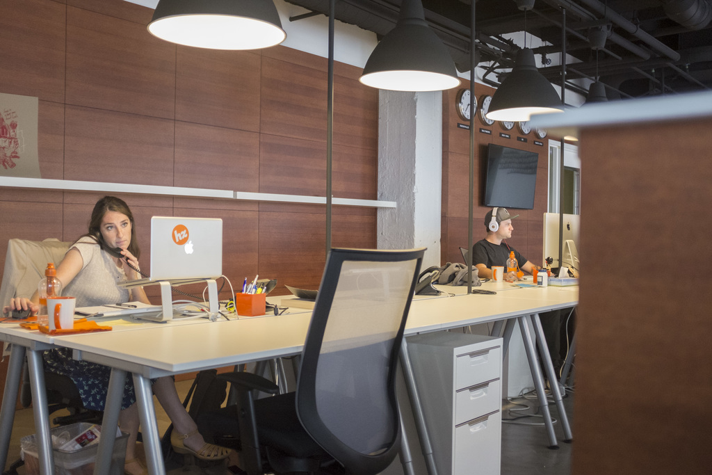 "In the zone..." Account Coordinator, Ali DeMoro (left) and Developer, Ryan Milano at work in the new HZDG office above Abbott Square. (Credit: Jules Henry-Rawls)