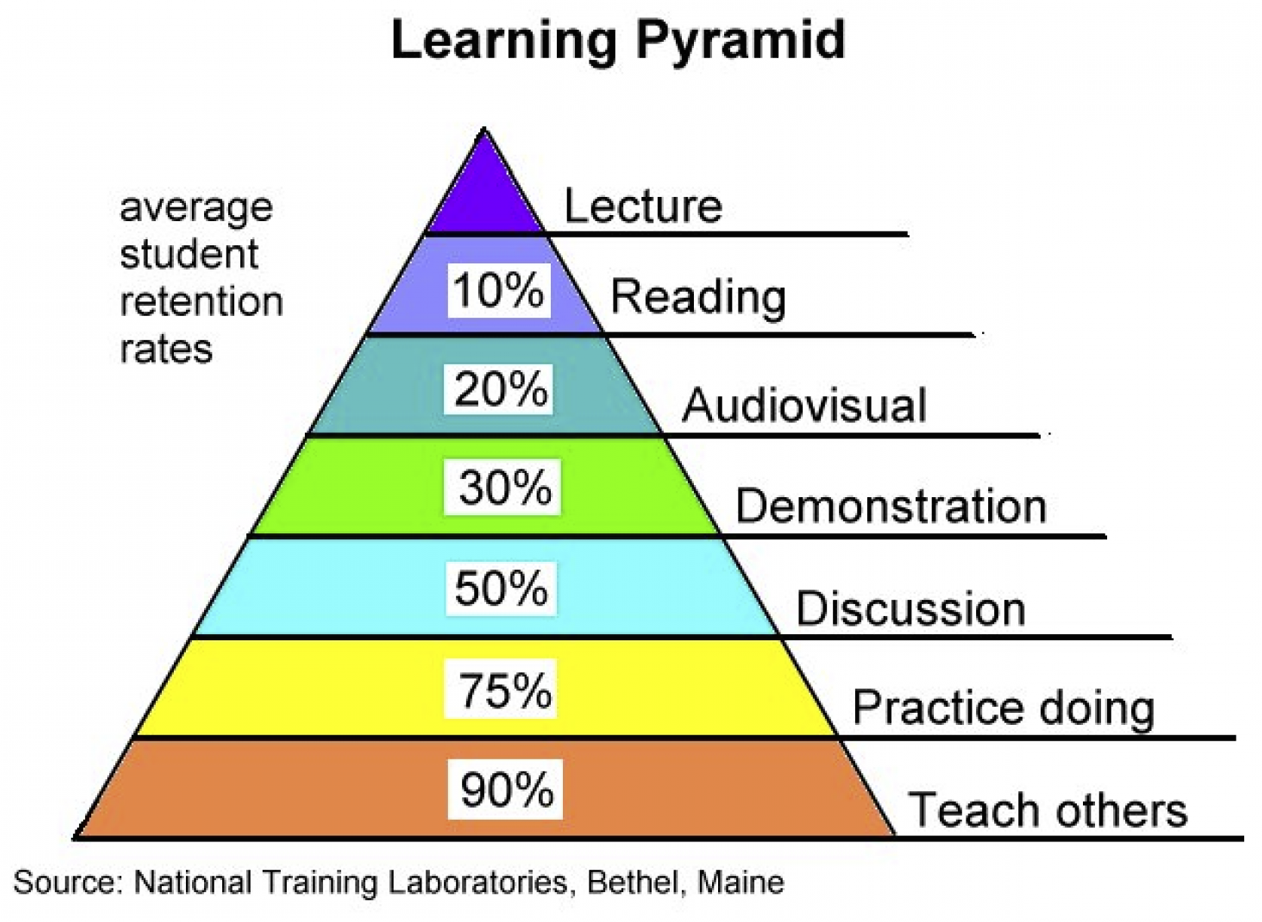 Weinman referenced the learning pyramid developed in the 1950s, used to illustrate teaching methods impacting student learning and retention. She emphasized that much of teaching/learning today should still be in-person, despite excellent online learning tools.
