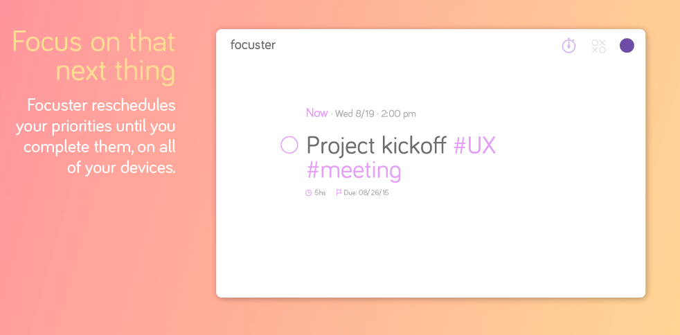 Last week, a Santa Cruz-based team launched Focuster, a new productivity tool, on the popular technology website Product Hunt. Focuster is an automatic intelligent scheduler that turns your to-do lists into an action game plan. Instead of manually scheduling tasks with dates and times, you select priorities and Focuster finds free space on your calendar and schedules them automatically.
