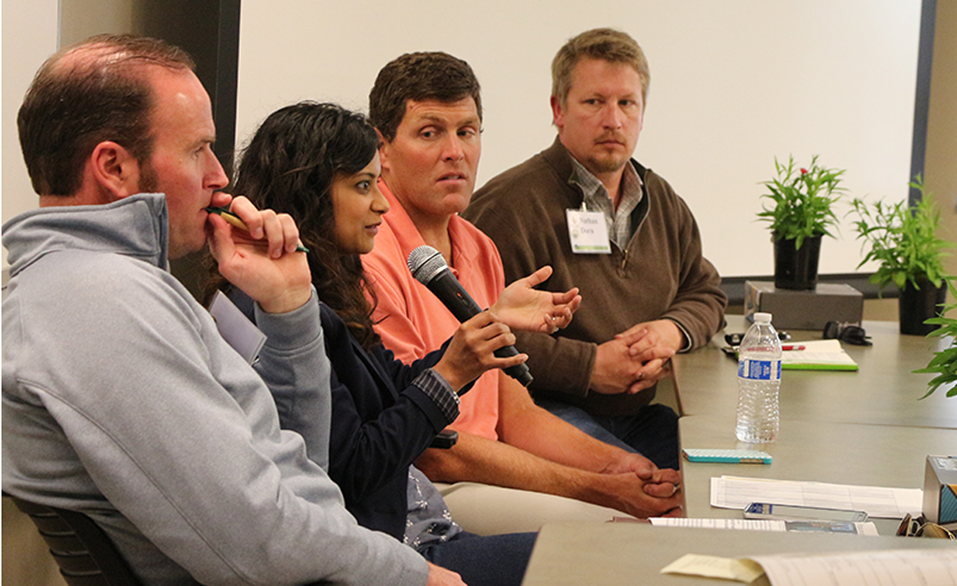 Bart Walker, Dr. Poormina Parameswaran, Tony Koselka and Nathan Dorn discussed the challenges growers face with emerging technologies and science research. (Credit: Jan Janes Media)