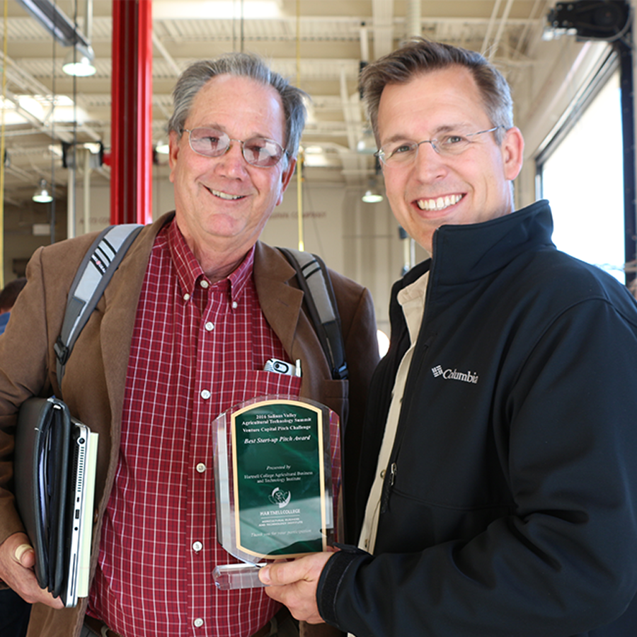 Illucen management team Stephen Johnson and Steve Schimmel won the 2016 Ag Tech Summit Best Start-Up Pitch Award for their plan to utilize all stages of the black soldier fly for food waste reduction and animal feed. (Credit: Jan Janes Media)