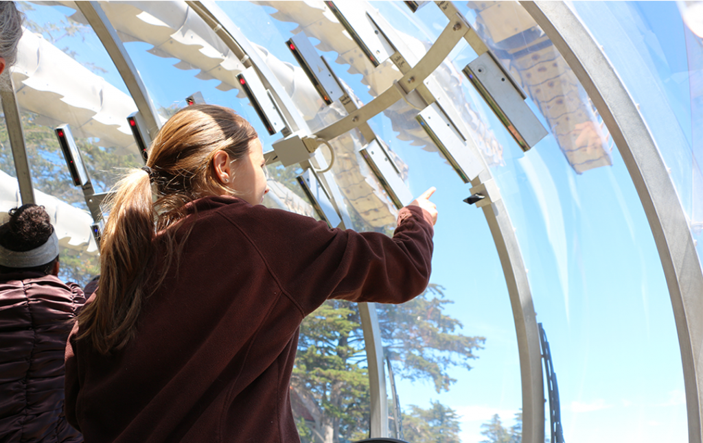 The Dragon – Aye, dragons await! A stainless steel dragon hydra, with glaring eyes and blowing steam, had its jaws operated by the wave of a hand on the first interactive stop on the Santa Cruz Mini Maker Faire tour. Kids quickly learned the technique commanding the beast to open and close its multi-headed jaws.