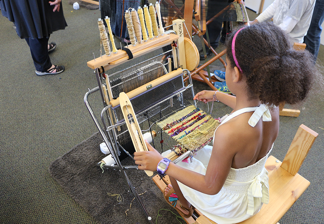 Fiber Arts, hands on creativity – Young and old, novices and accomplished weavers got time at six looms set up by Saori Fiber Arts, creating unique results.