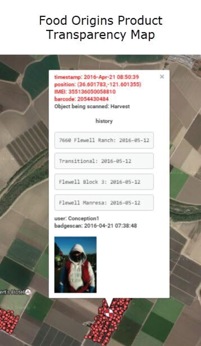 (Photo above: Food Origins has data trials that show who picked it, where they were standing when they did, the minute and second that they picked it. Contributed.)
