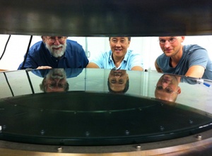 The new system was delivered to his laboratory in July and has performed well in initial testing. The researchers will use the system to demonstrate that it works for telescope mirrors and other large substrates and to continue perfecting the coatings. The system can accommodate a mirror up to 0.9 meter in diameter, and there is no reason the design could not be scaled up to accommodate even larger mirrors or mirror segments, Phillips said. The 10-meter primary mirrors of the twin Keck Telescopes in Hawaii are composed of hexagonal segments 1.8 meters across, and the mirror segments for the Thirty Meter Telescope (TMT) will be 1.4 meters across.