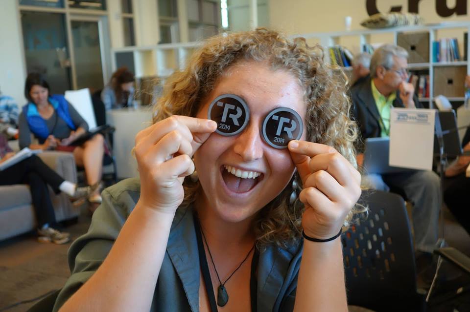 (Photo above: Blast from the past! The original three TechRaising cofounders, left to right, Matthew Swinnerton, Margaret Rosas, and Andrew Mueller mug for the camera as Sara Isenberg, Santa Cruz Tech Beat founder, swoops in for the photobomb. Source: Facebook)