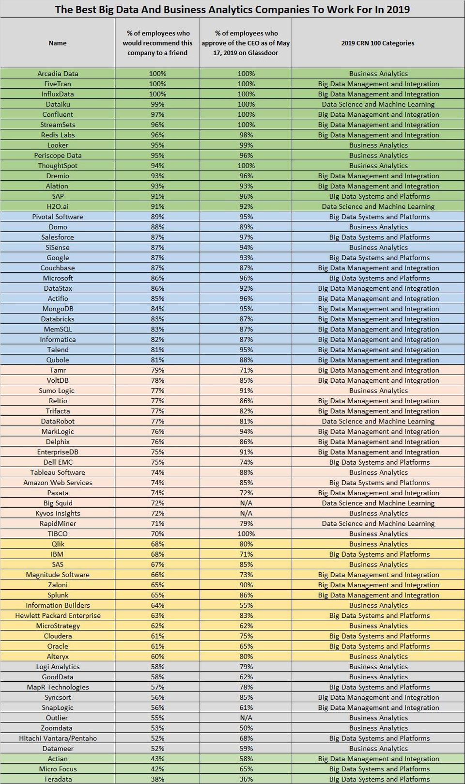 Continue reading here: https://www.forbes.com/sites/louiscolumbus/2019/05/17/the-best-big-data-companies-and-ceos-to-work-for-in-2019-based-on-glassdoor/#e5d973a4d1ad
