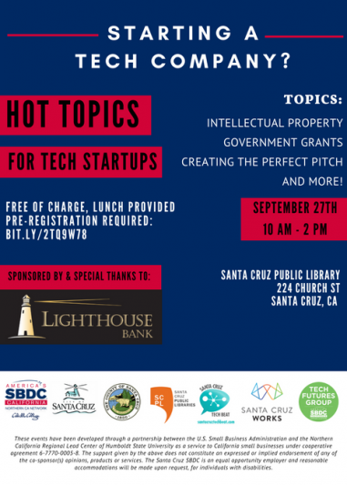 By Kate Rose SBDC Communications Strategist Special to Santa Cruz Tech Beat August 31, 2017 — Santa Cruz, CA Santa Cruz Small Business Development Center (SBDC) presents: Hot Topics for Tech Startups: Three industry advisors […]