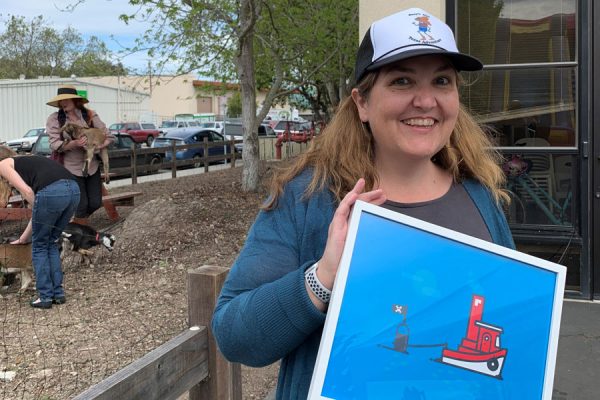 By Sarah Reckard Resideo Communications August 15, 2019 — Santa Cruz, CA (Photo above: AARRRRR! Keri Waters holds a framed picture of a tugboat —..
